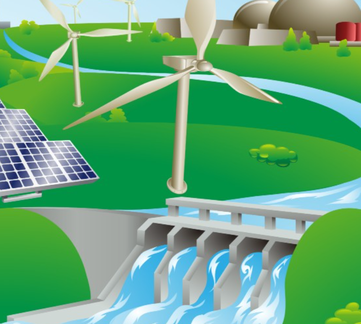 Hvis der ikke er nogen sol, kan vores energiforsyning komme fra enten vindmøller eller vandkraft.